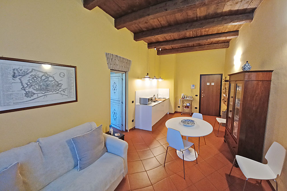 Casa Duchesse è un signorile appartamento al primo piano di un edificio storico ferrarese: è ubicato in Via Garibaldi,1/a adiacente alla rinascimentale piazza municipale e a meno di 50 metri a piedi da Cattedrale e Castello Estense. L'appartemento inoltre si affaccia sul famoso giardino delle Duchesse. L'appartamento si compone di una zona living attrezzata con cucinotto, TV LCD e divano letto doppio, un'ampia camera matrimoniale con annesso bagno con vasca. Completano la dotazione un secondo bagno con lavatrice, pavimenti in cotto ferrarese, soffitti in legno e travi e vari elementi architettonici tipicamente rinascimentali.